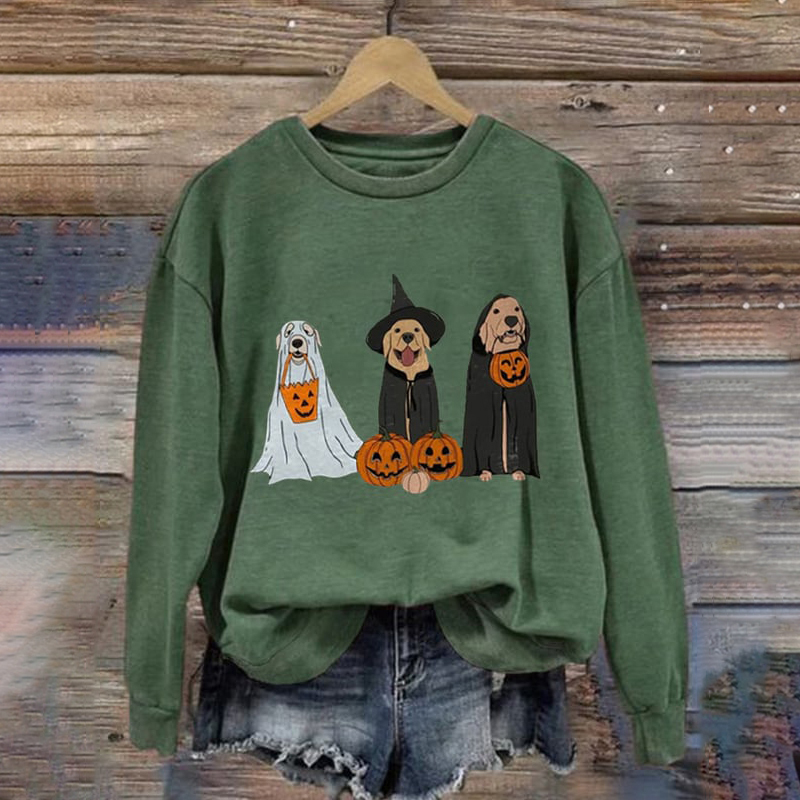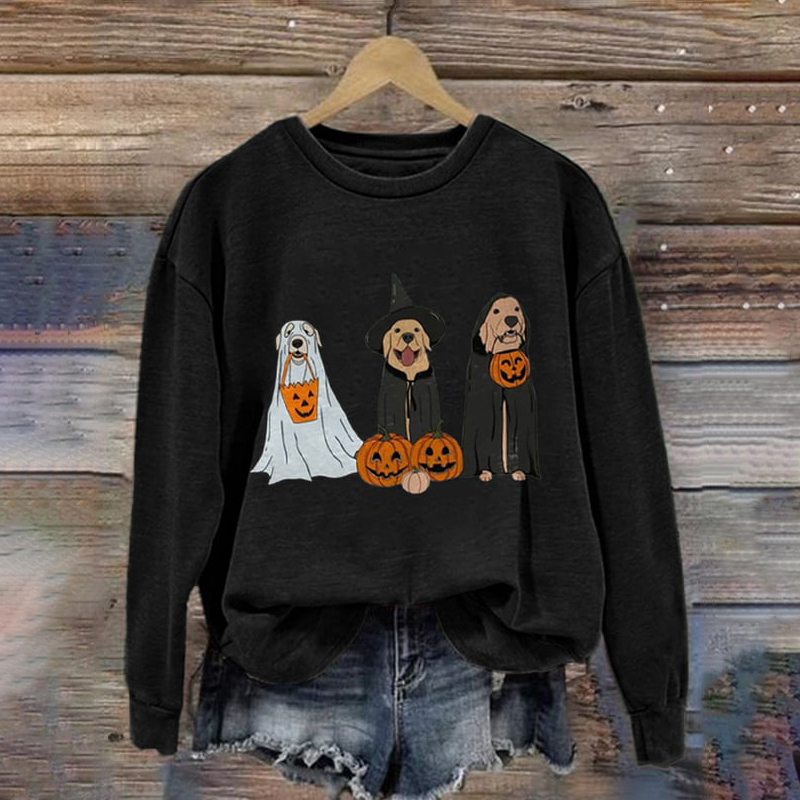 Halloween Dog Pumpkin Print Sweatshirt