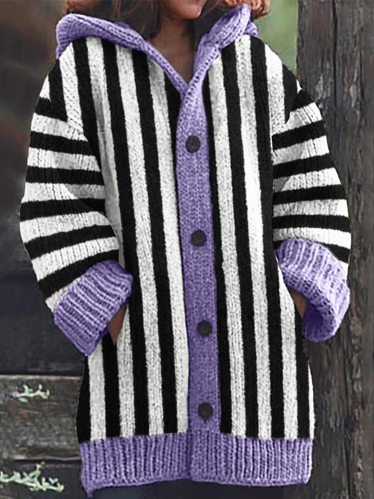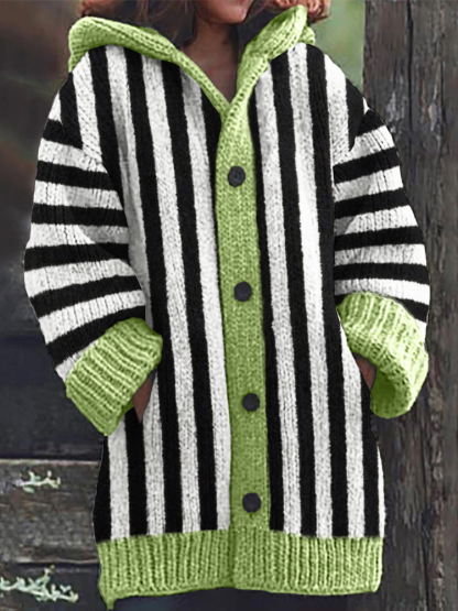 Halloween Horror Movie Inspired Striped Cozy Knit Hooded Cardigan