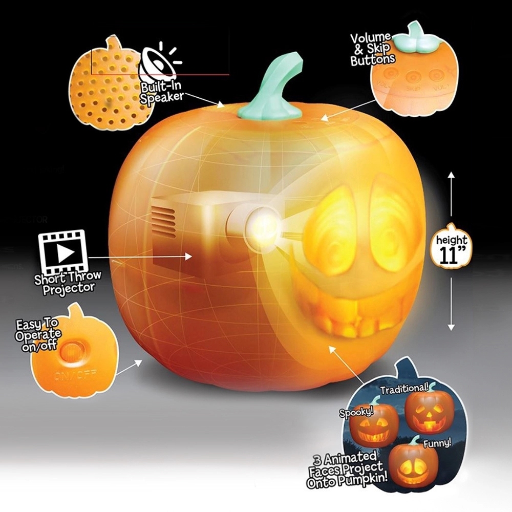 Halloween Talking Animated Pumpkin will add happiness to your Halloween party with his collection of songs and jokes! Three unique character themes (spooky, traditional, and funny) provide over 70 minutes of fun animations. Provide unique and interesting entertainers for more than an hour!