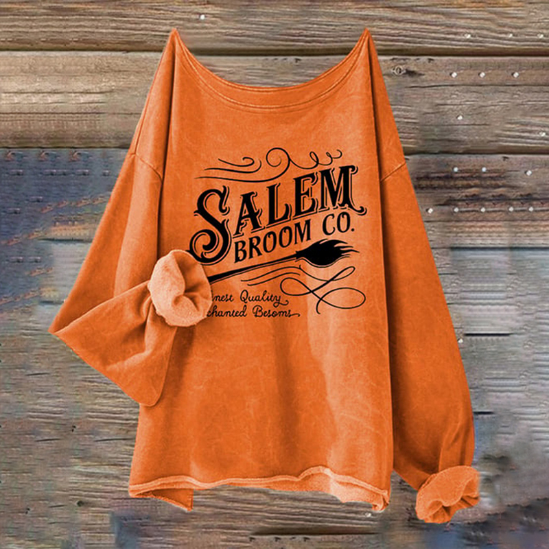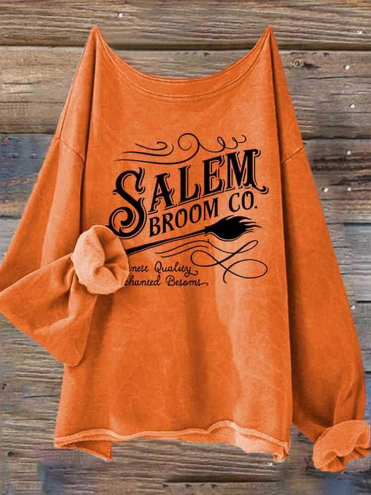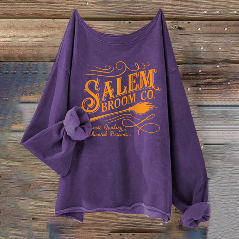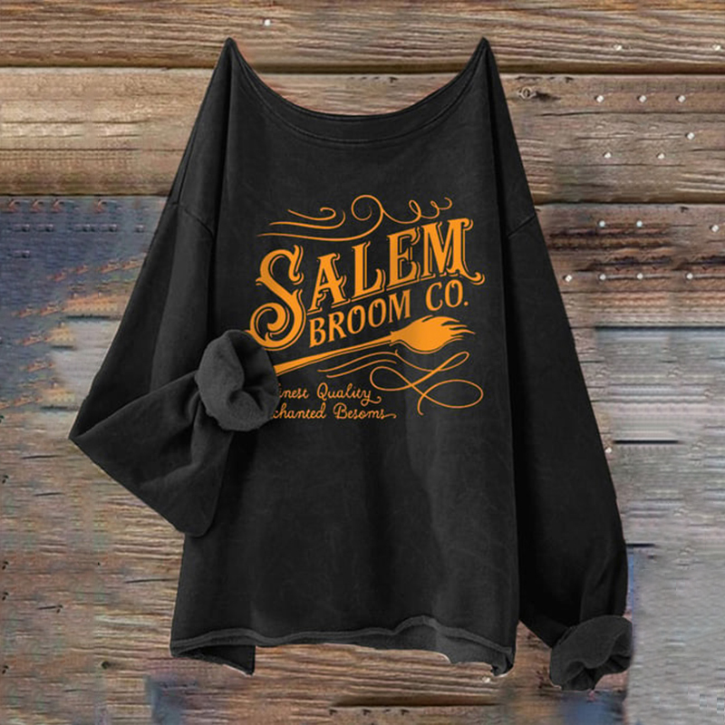 Halloween Salem Broom Co. Casual Long Sleeve Sweatshirt