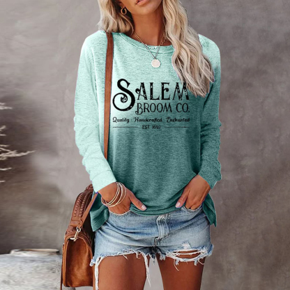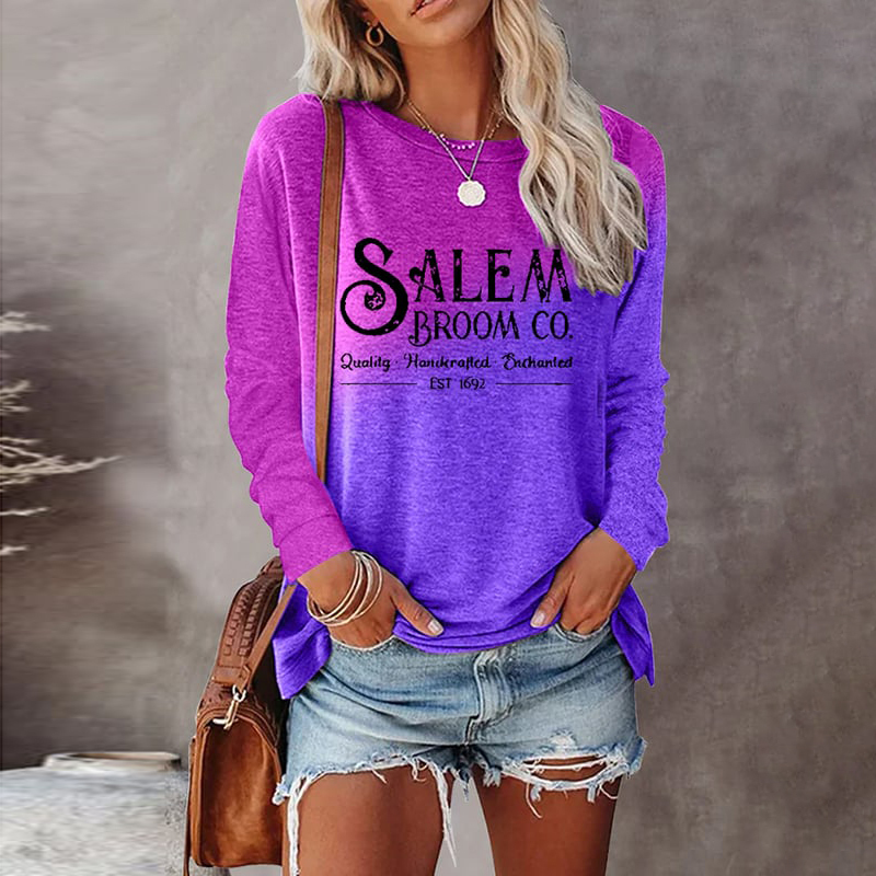 Halloween Salem Broom Co Gradient Print Long Sleeve T-Shirt