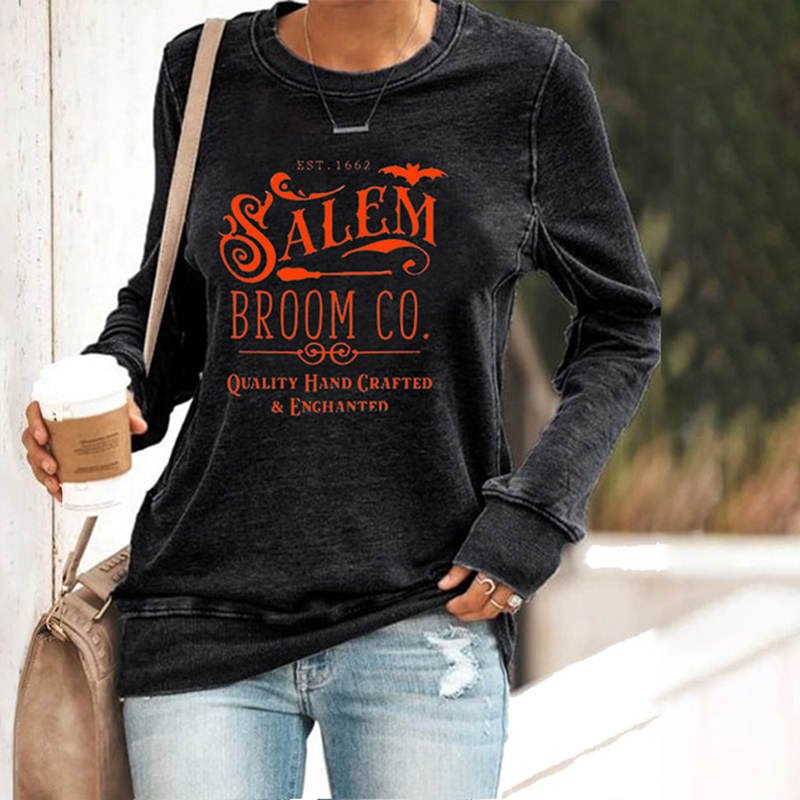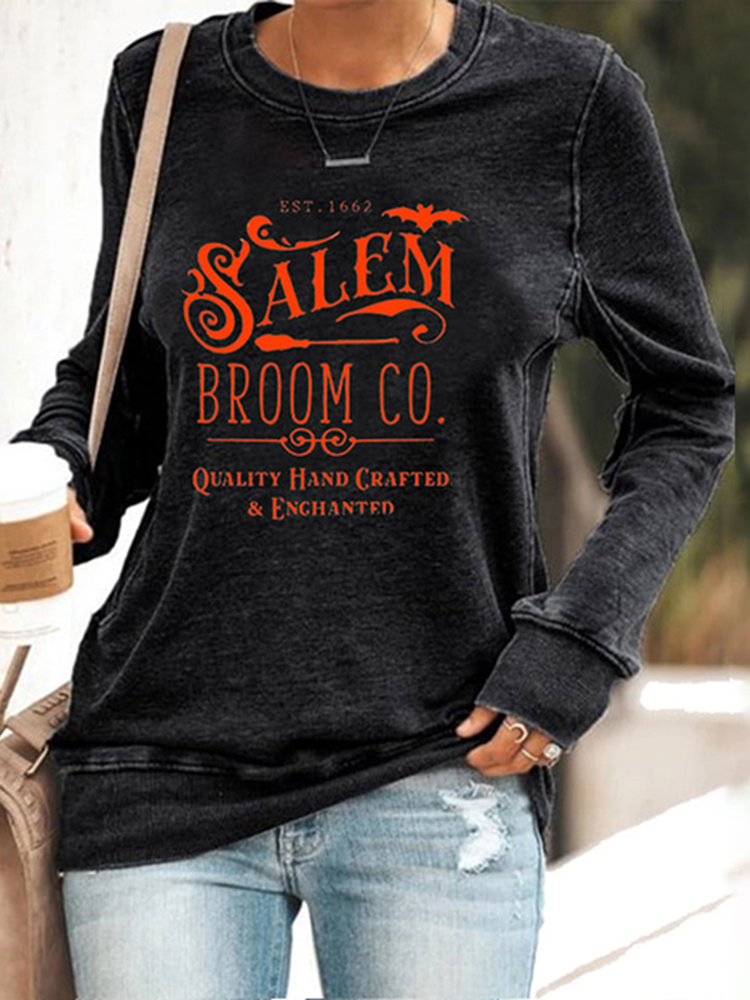 Halloween Salem Broom Co Printed Sweatshirt