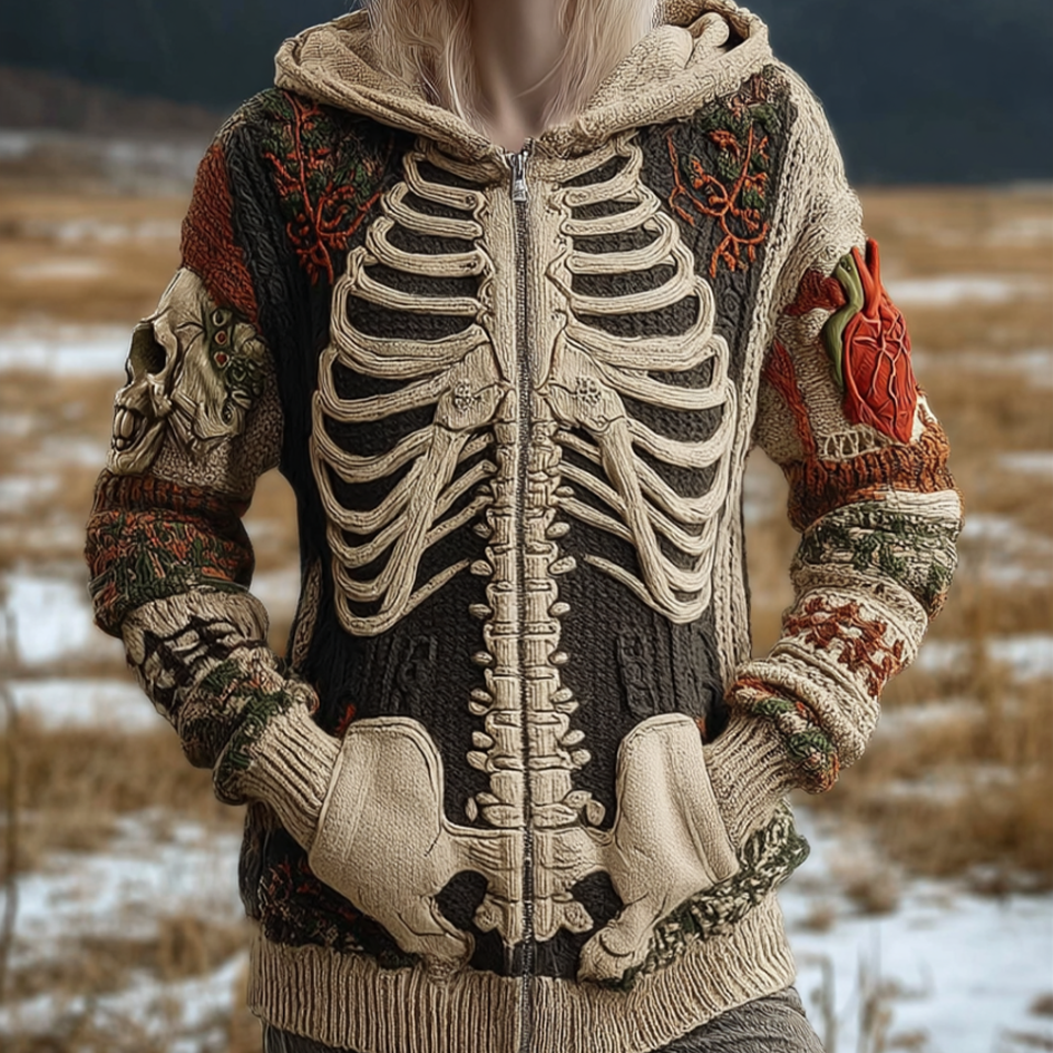 Halloween Skeleton Pattern Women's Knit Hooded Sweater Jacket