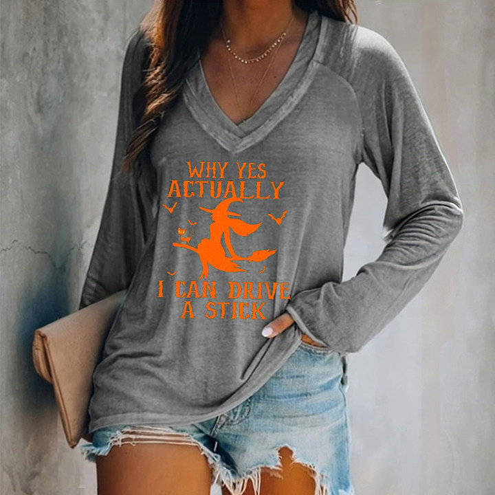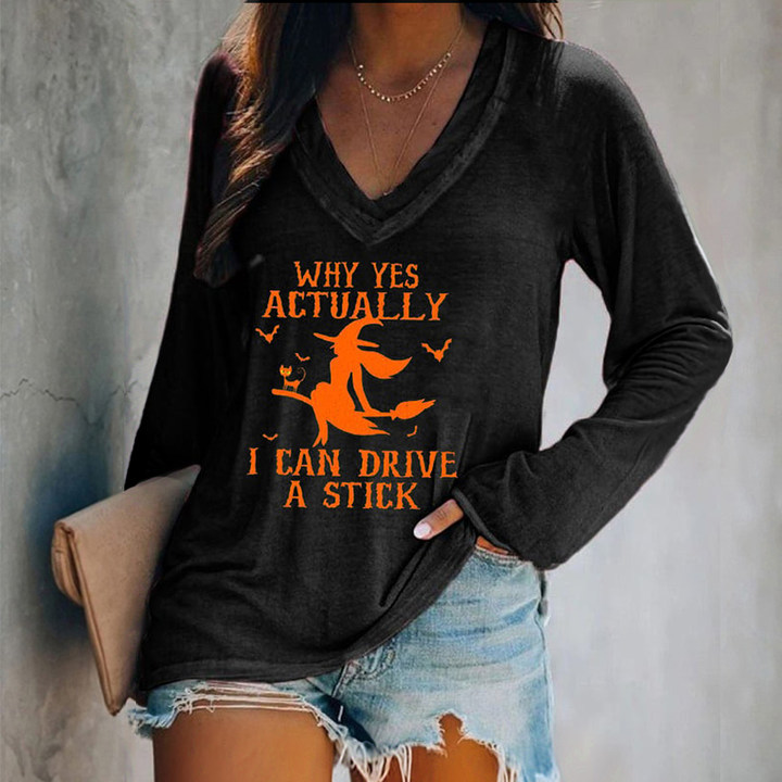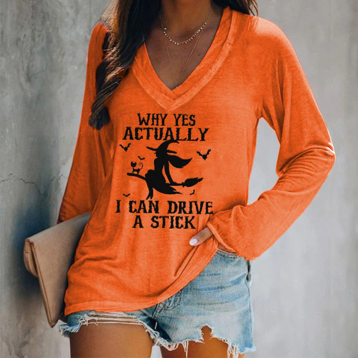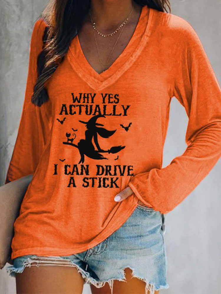 Halloween Why Yes Actually I Can Drive A Stick Casual V-Neck Long Sleeve T-Shirt