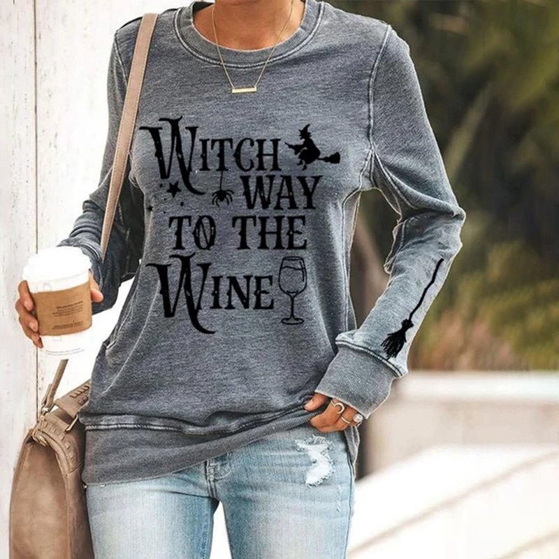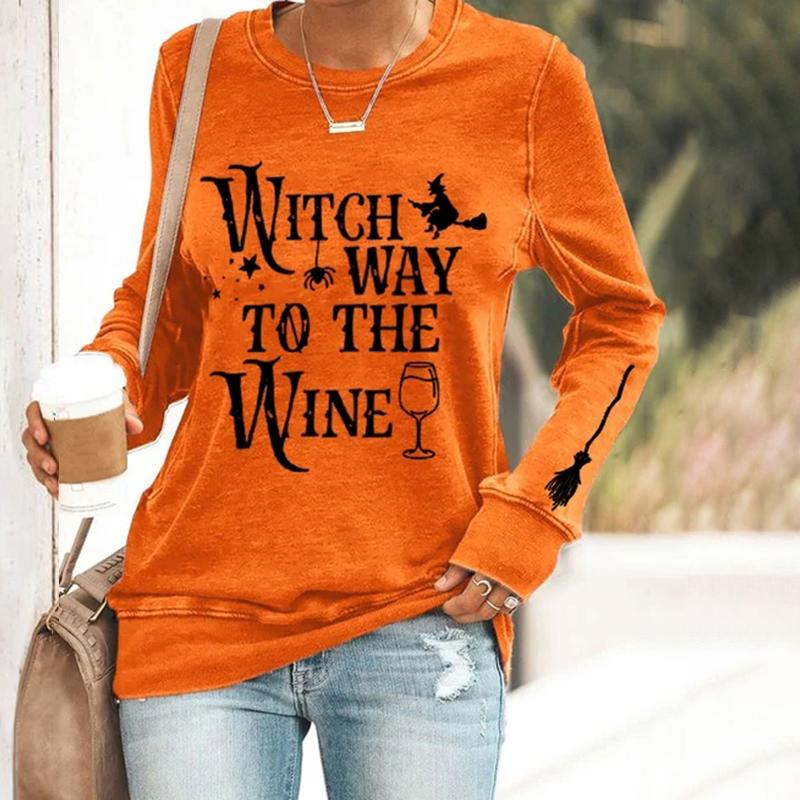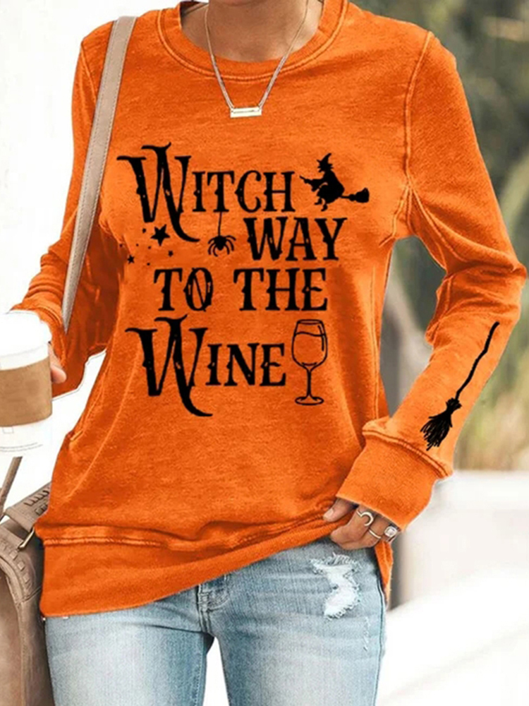 Halloween Wicth Way To The Wine Print Sweatshirt