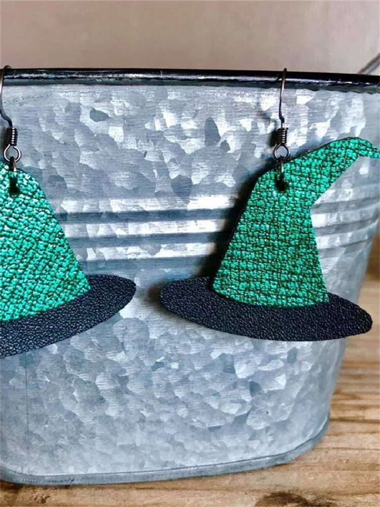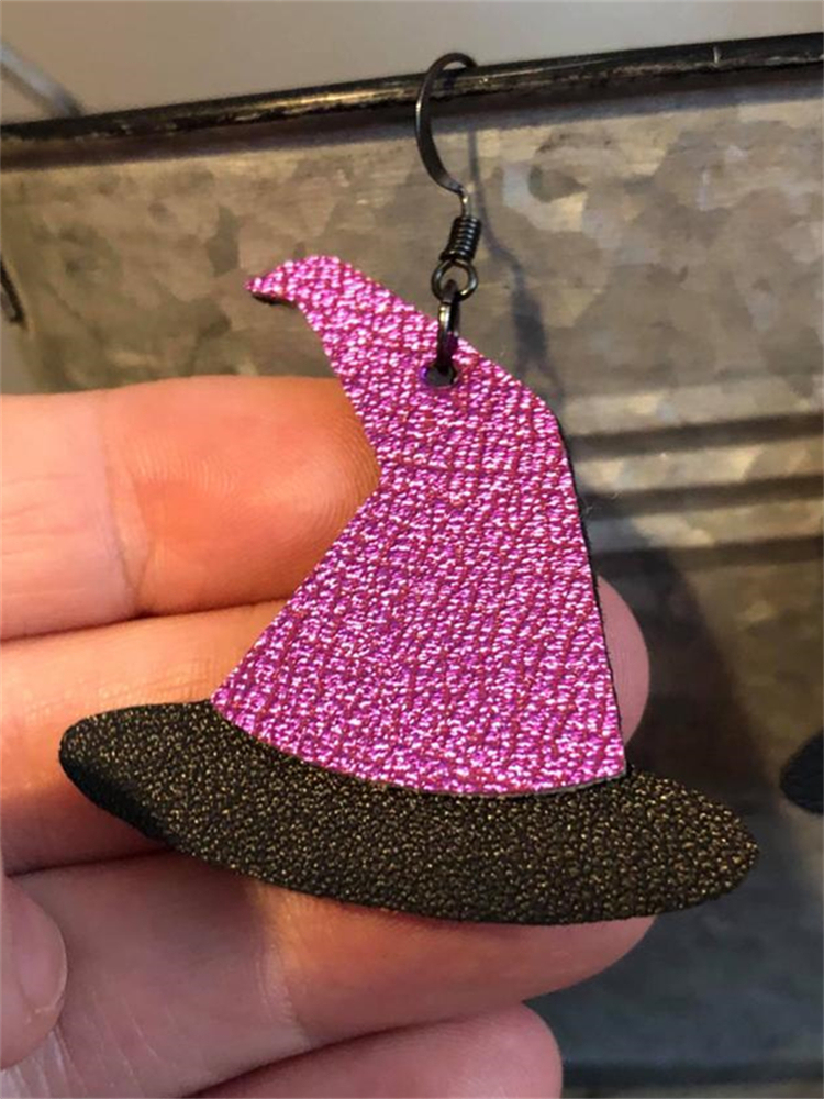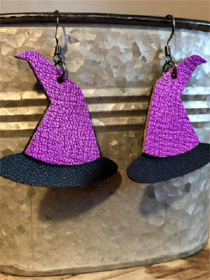 Halloween Witch Hat Leather Patchwork Earrings