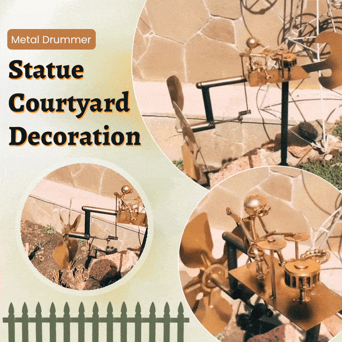 Our Handmade Metal Drummer Windmill is fully hand-welded and crafted with care. As the wind turns the windmill at the back, it drives the drummer to play the drum — the stronger the wind, the faster the beats. We've also replaced the traditional front-facing arrow with a unique guitar-shaped design, adding a fun musical twist.