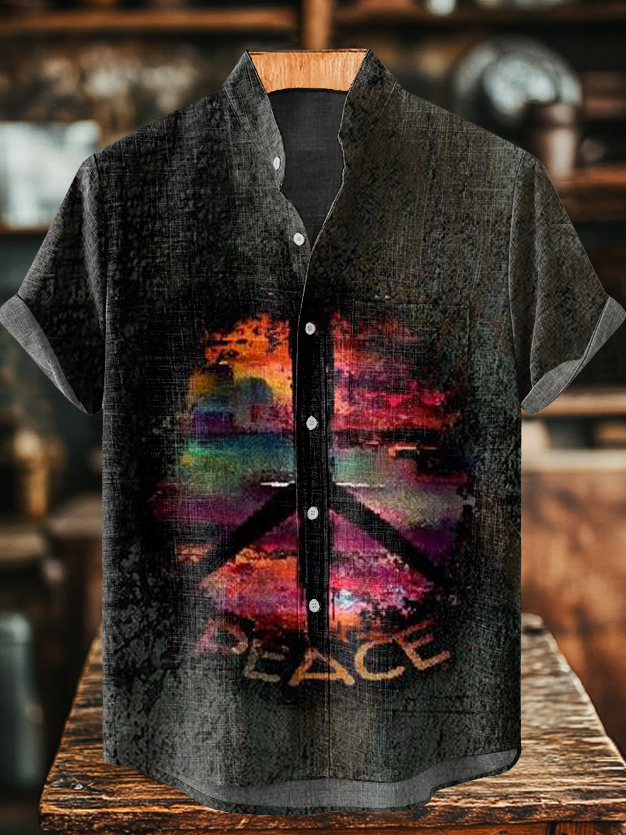 Hippie Peace Art Print Casual 100% Cotton Shirt