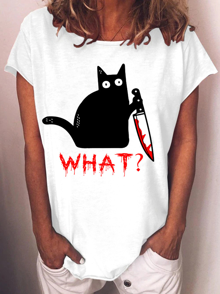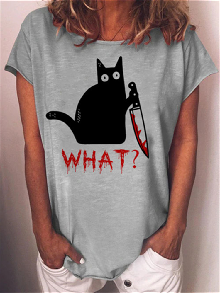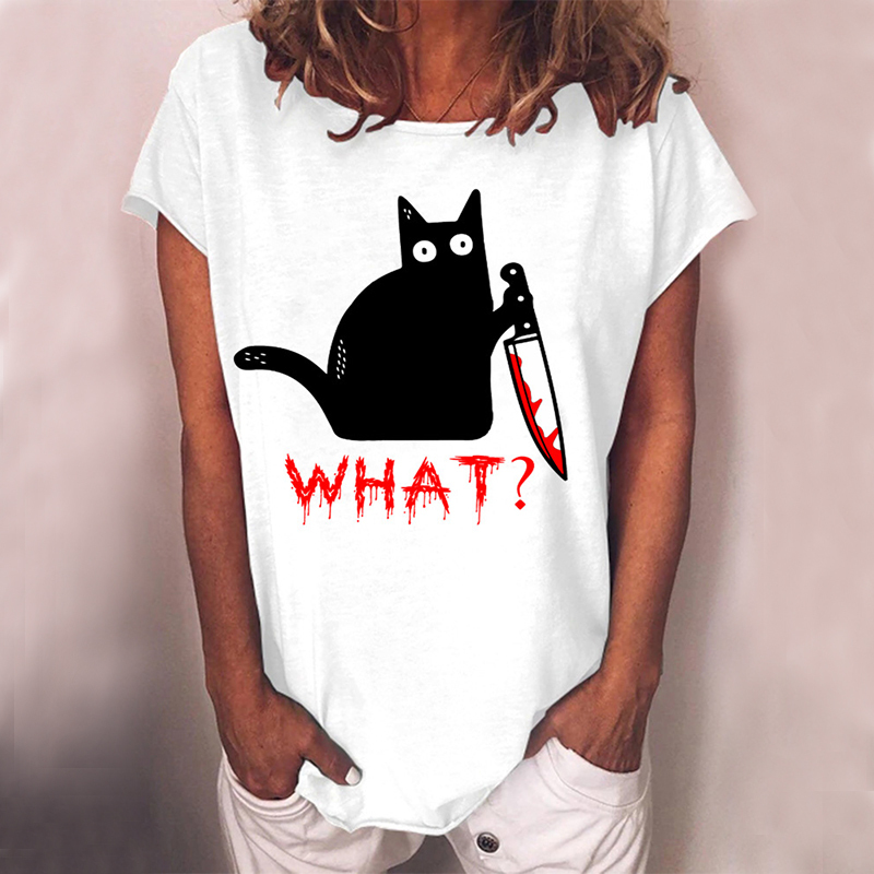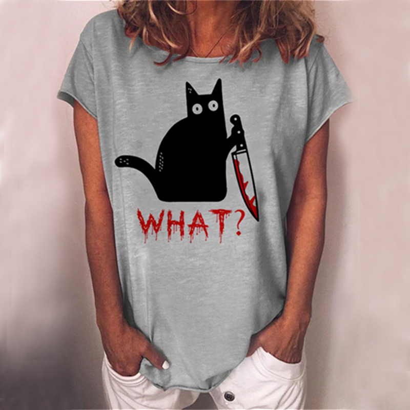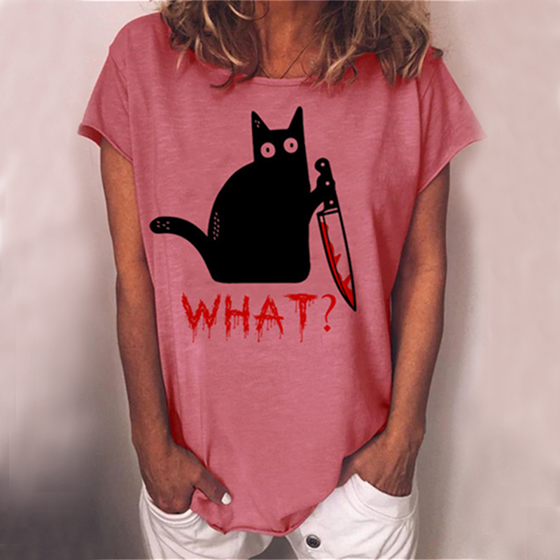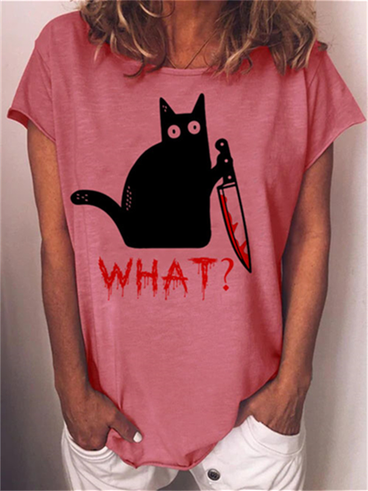 Holding Knife Black Cat What Loose T Shirt