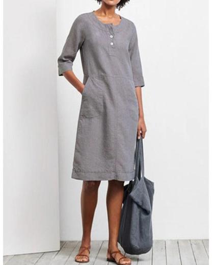 Holiday Linen Women Pocket Dress