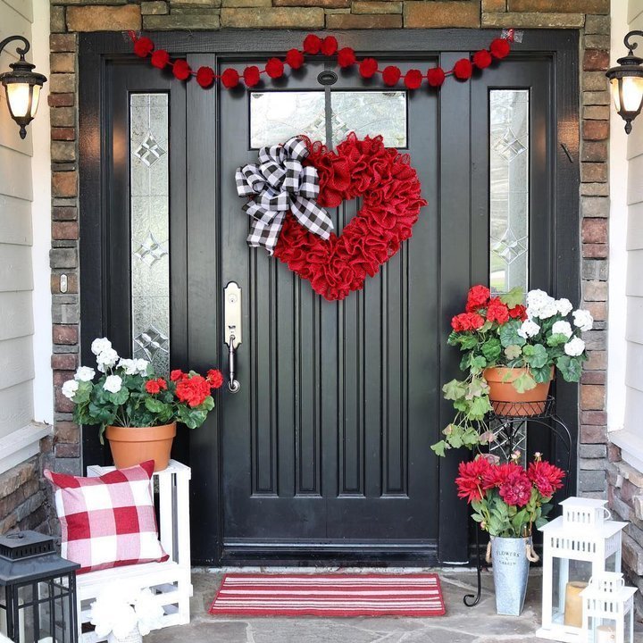 You can display this decorative heart wreath indoors or outdoors. If you plan to display the wreath outdoors, we recommend placing it in a covered area.