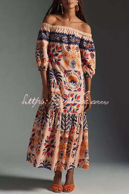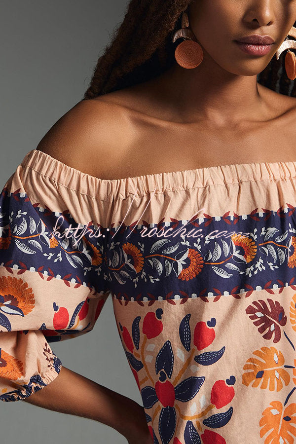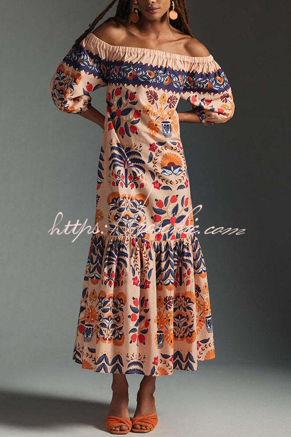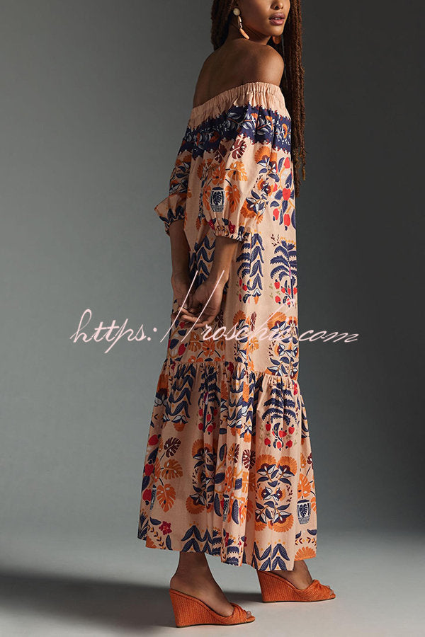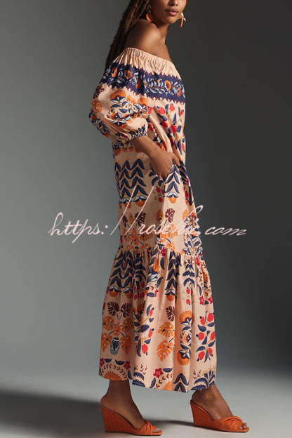 Island Lover Printed Off The Shoulder Pocketed Flowy Midi Dress
