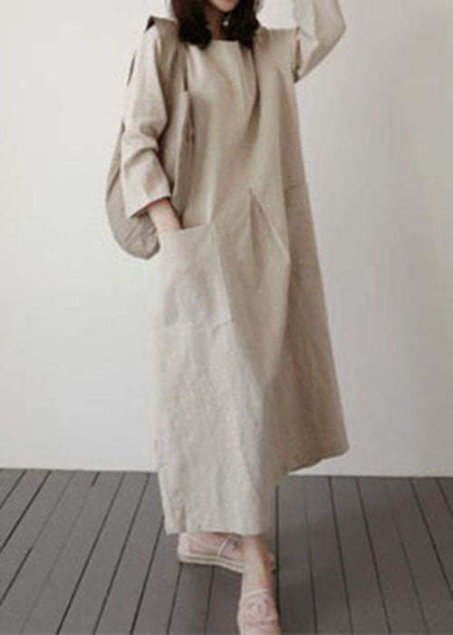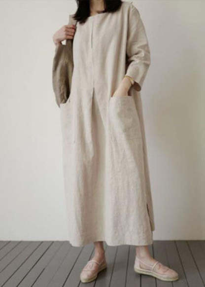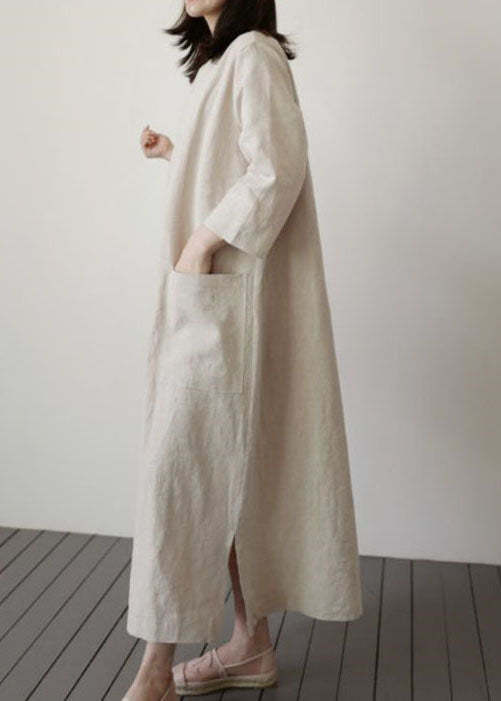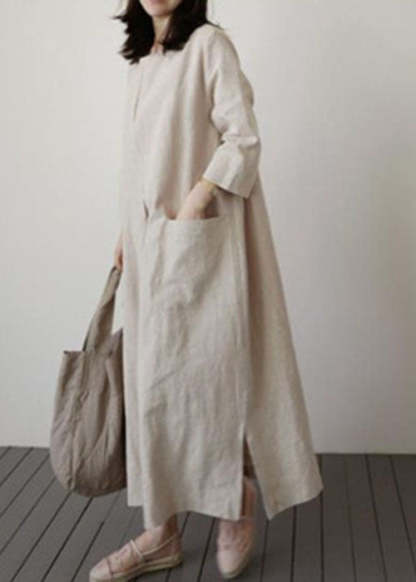 Italian Beige Cinched side open Linen Robe Dresses Spring