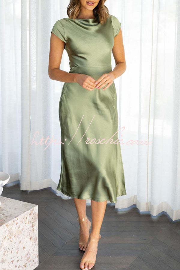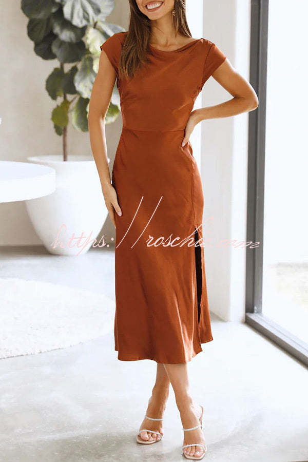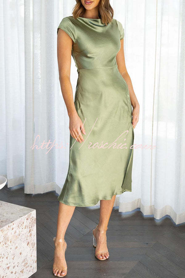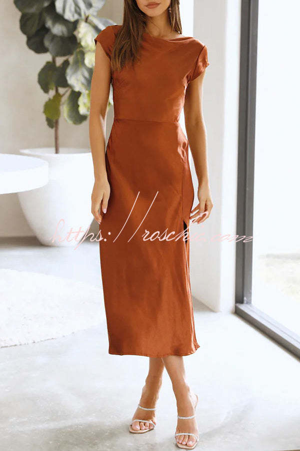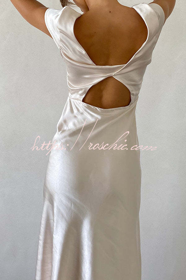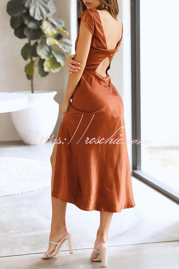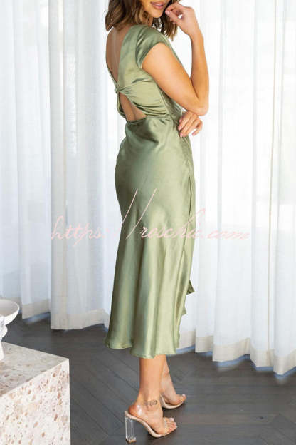 Ivana Satin Twist Back Cutout Midi Maxi Dress