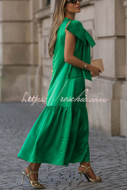 Ever Yours Satin Oversized Bow Detail Sleeveless Loose Maxi Dress