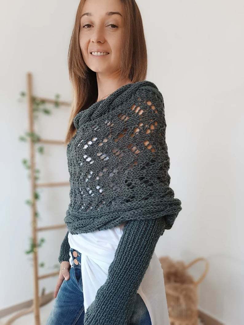 You can wear this scarf sweater throughout the year, both on cool summer nights and warm winter evenings.