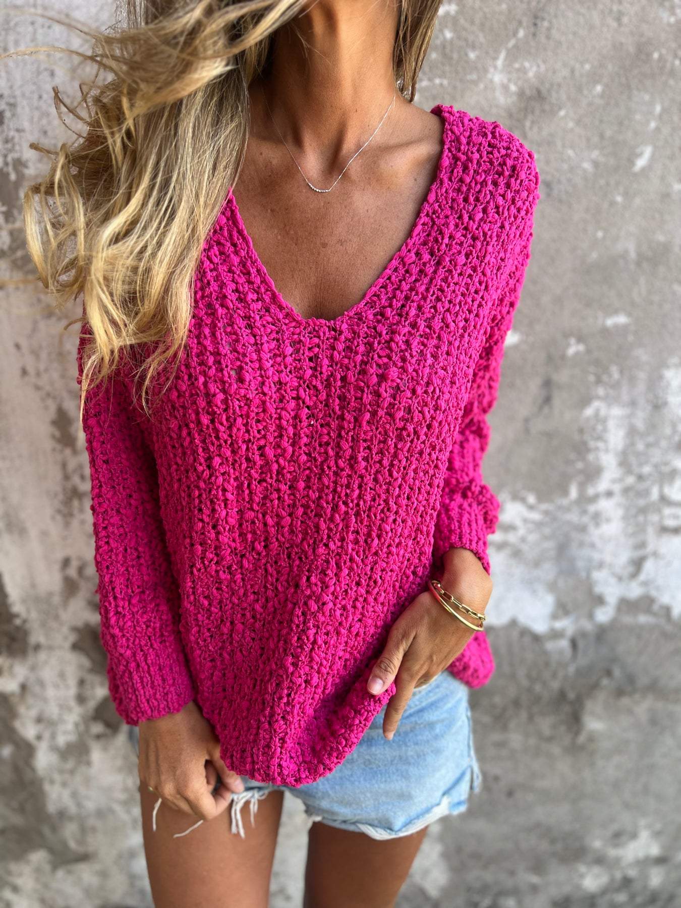 Knitted V-neck Long-sleeved Top