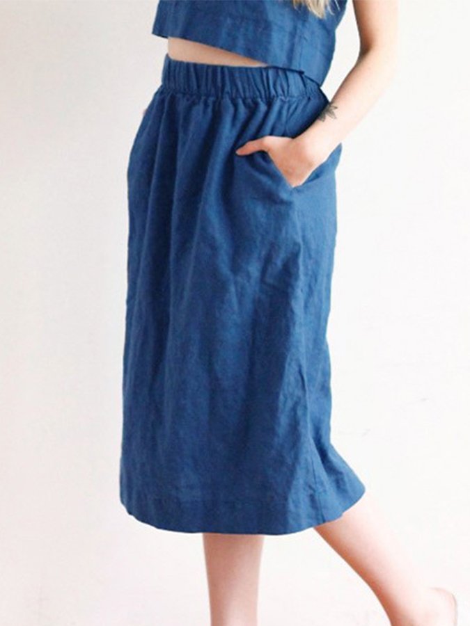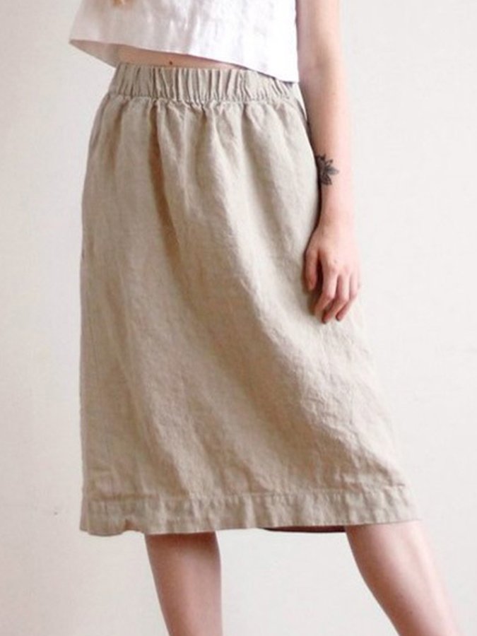 Ladies Cotton Linen Casual Loose Skirt