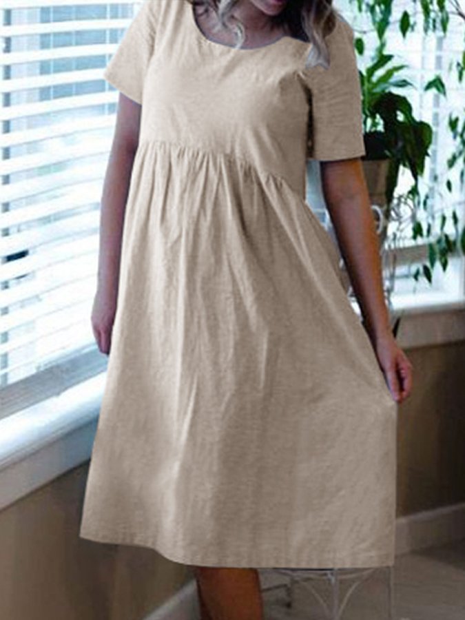 Ladies cotton linen simple casual dress