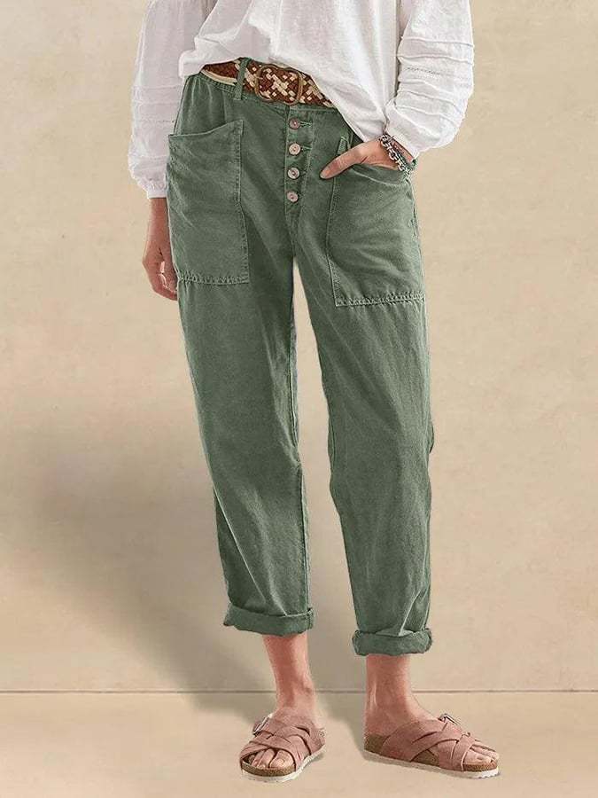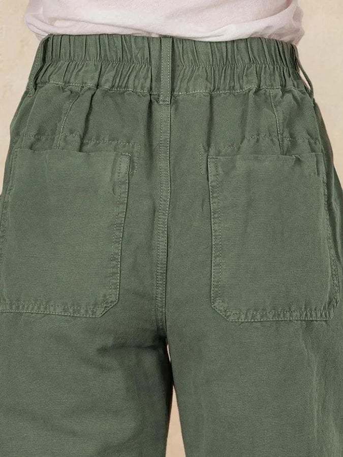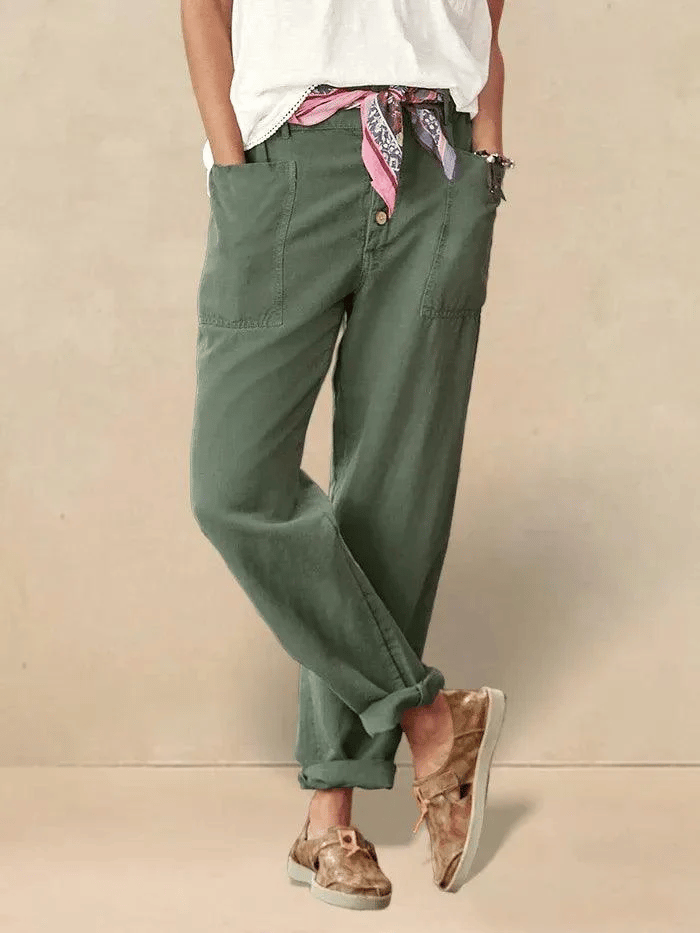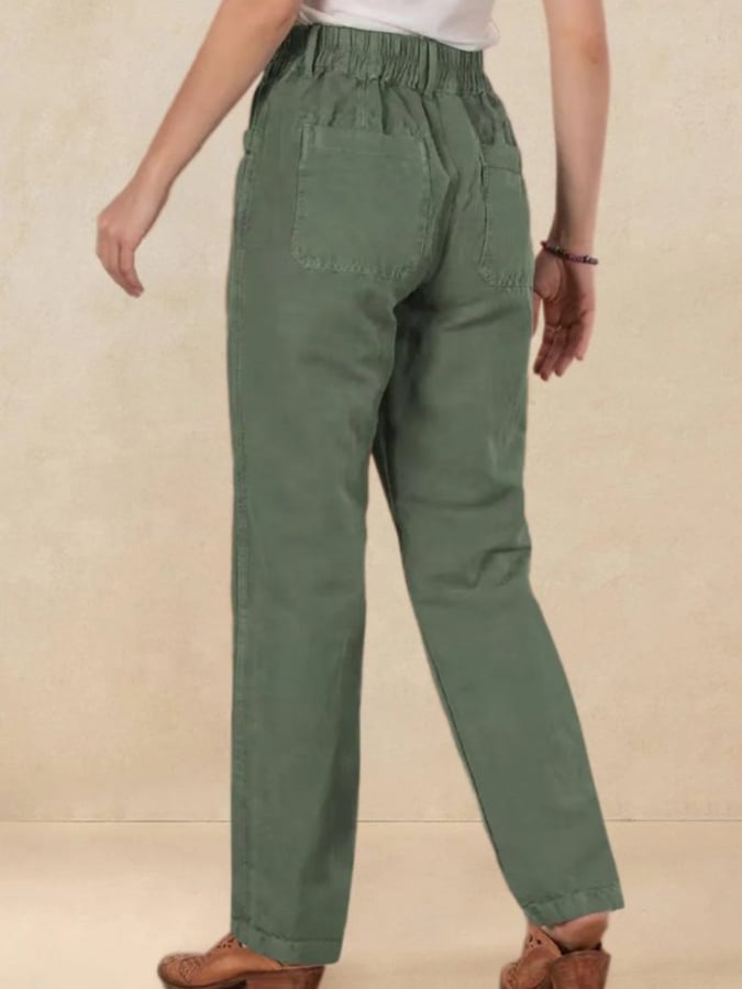 Ladies Semi-Elastic Waist Cotton And Linen Trousers