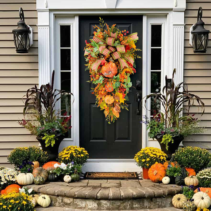 🍁FEATURE: Brand New Design! My Large Fall Pumpkin Wreath is just perfect for all your home decorating needs. Whether for the front door or to brighten up an inside wall.
