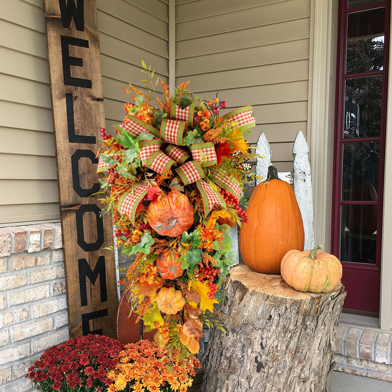 Large Fall Pumpkin Wreath-Year Round Wreath