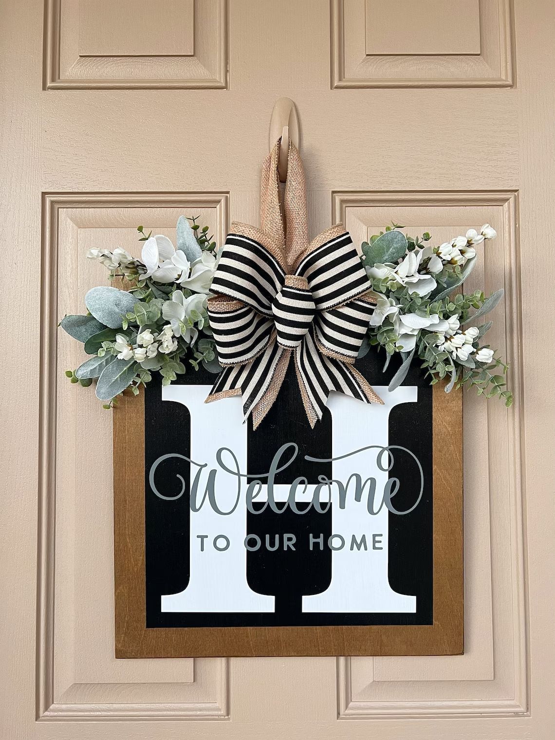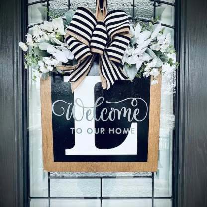 • Includes: Striped bow, Greenory, Welcome Front Door Sign