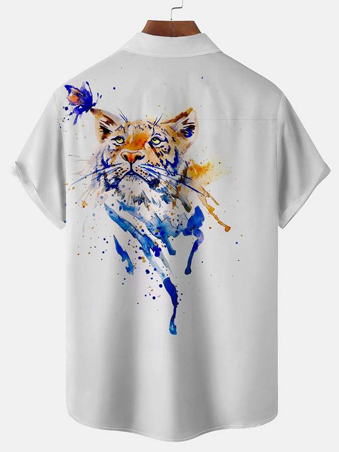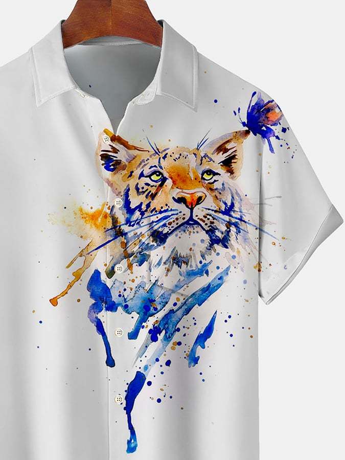 Leisure Holiday Tiger Print Men'S Short-Sleeved Shirt