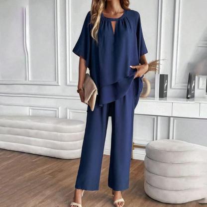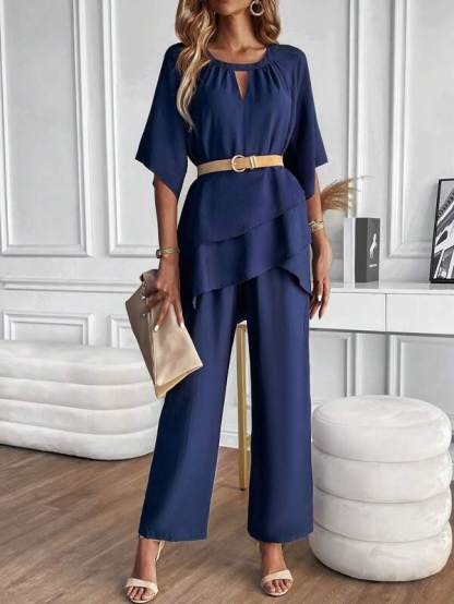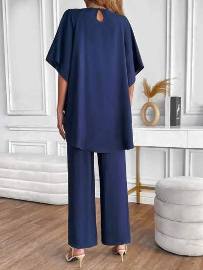 Chic Navy Plain Two Piece Set