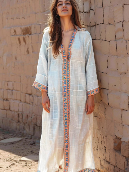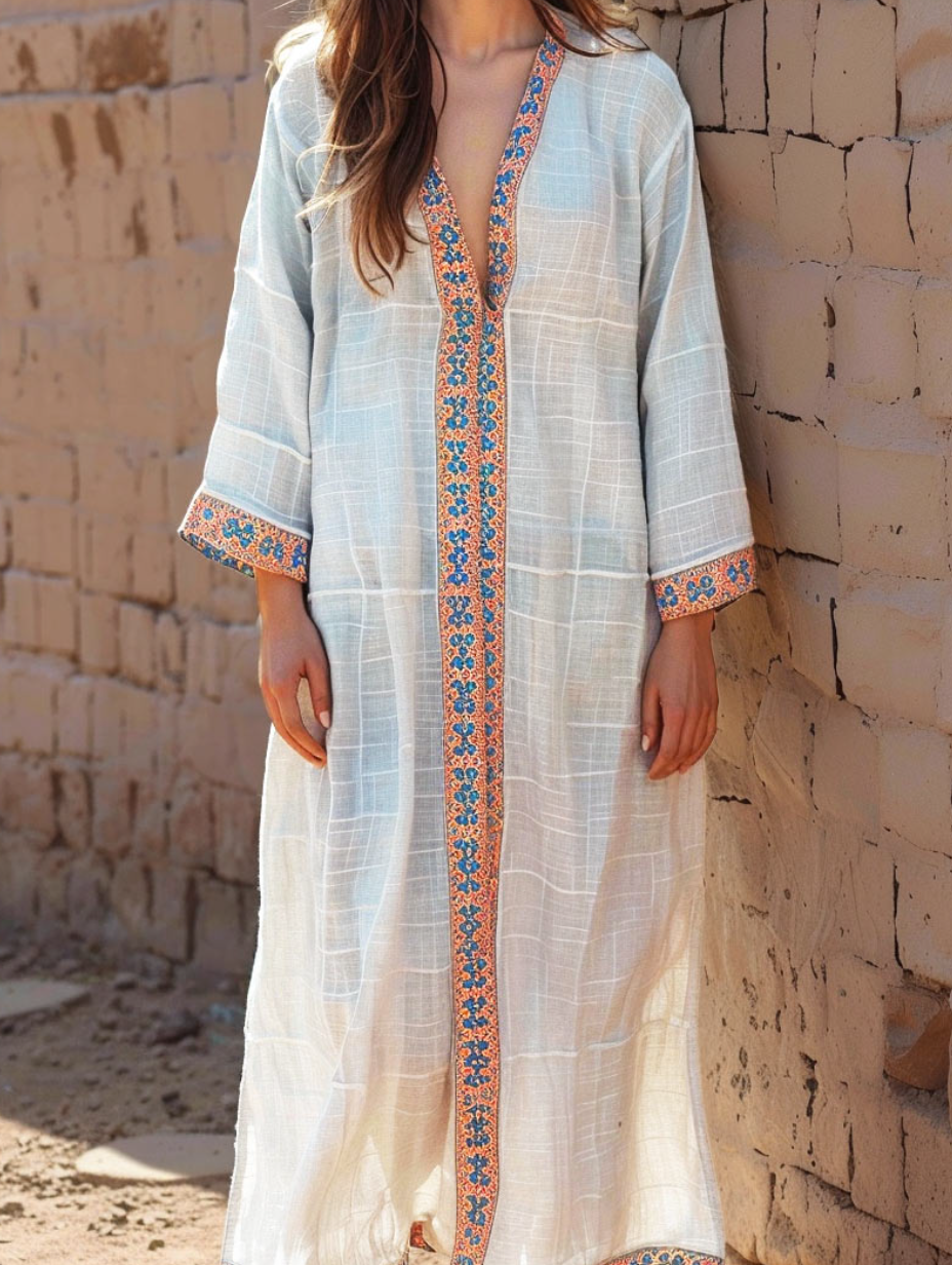 Linen Boho Stylish Printed Kaftan Maxi Dress