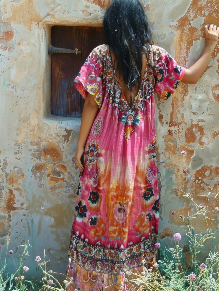 Linen Boho Stylish Printed Kaftan Maxi Dress