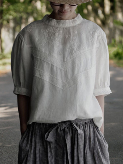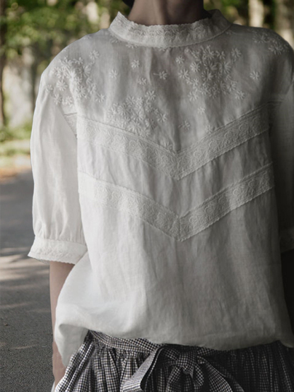 Linen Embroidered Lace Blouses