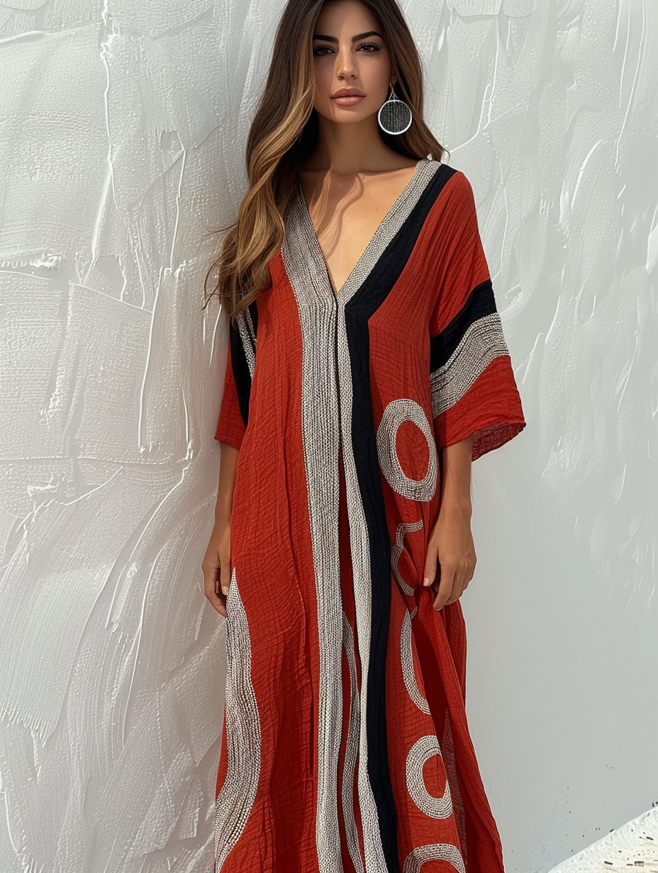 Elegant Women's Cotton-Linen Kaftan – Breathable & Stylish