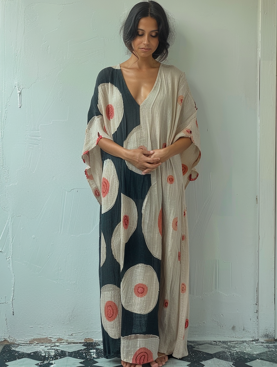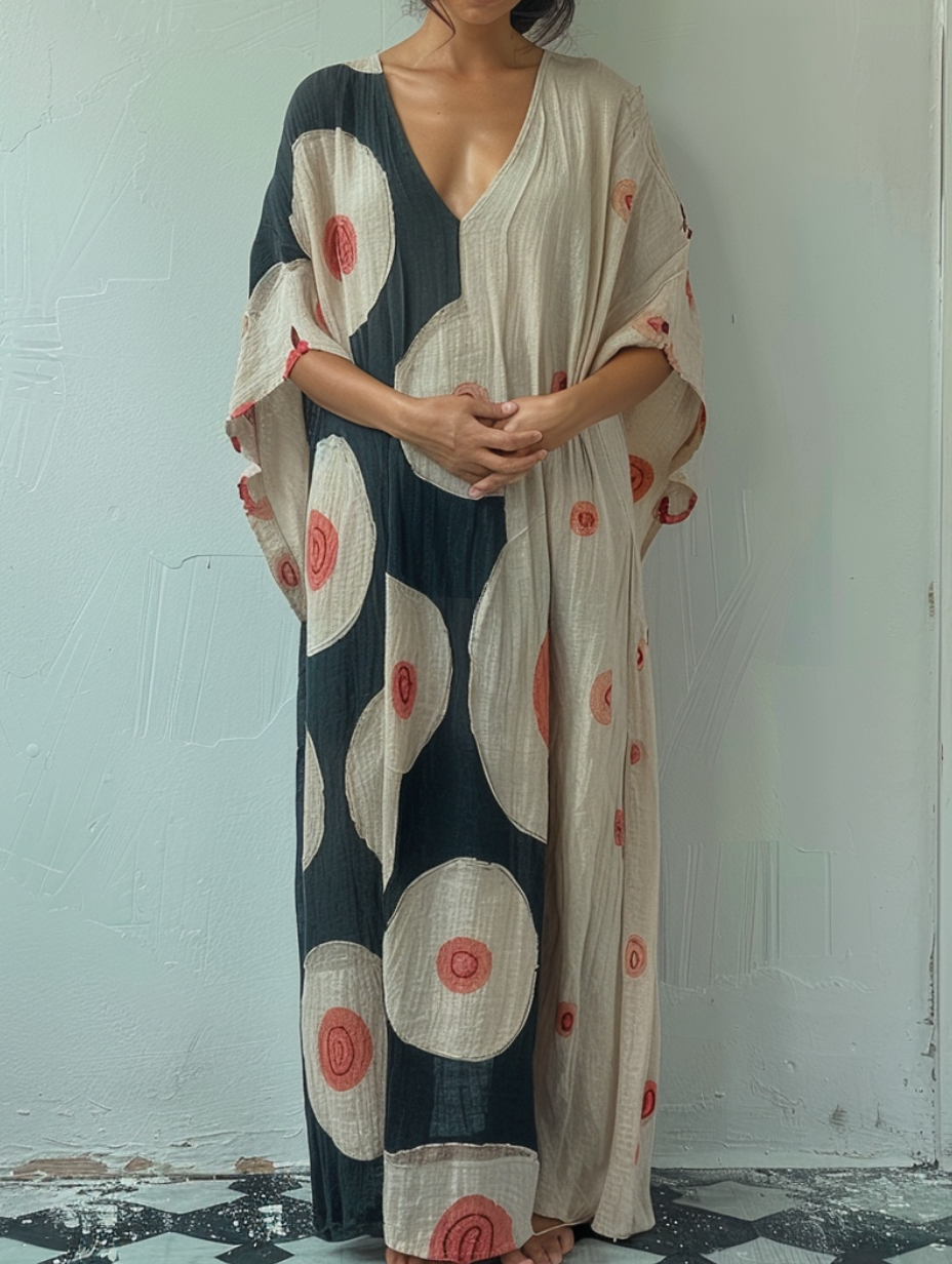 Linen Printed Kaftan Maxi Dress