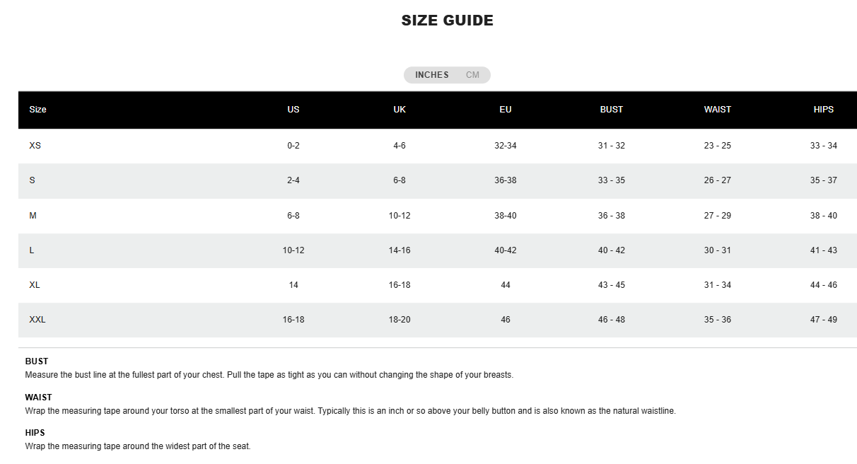 Size Chart:
