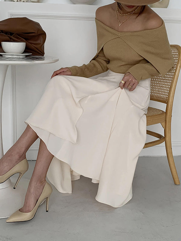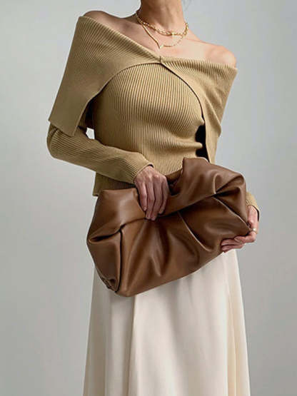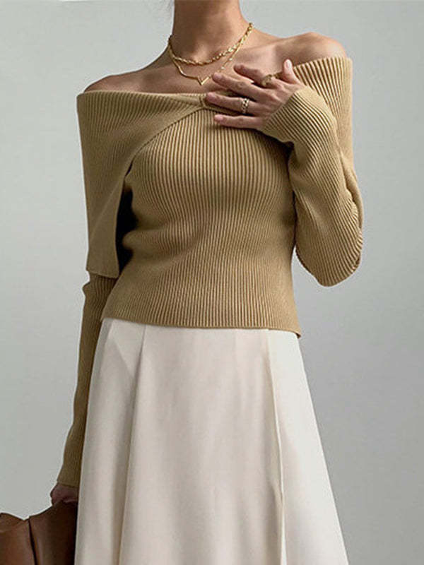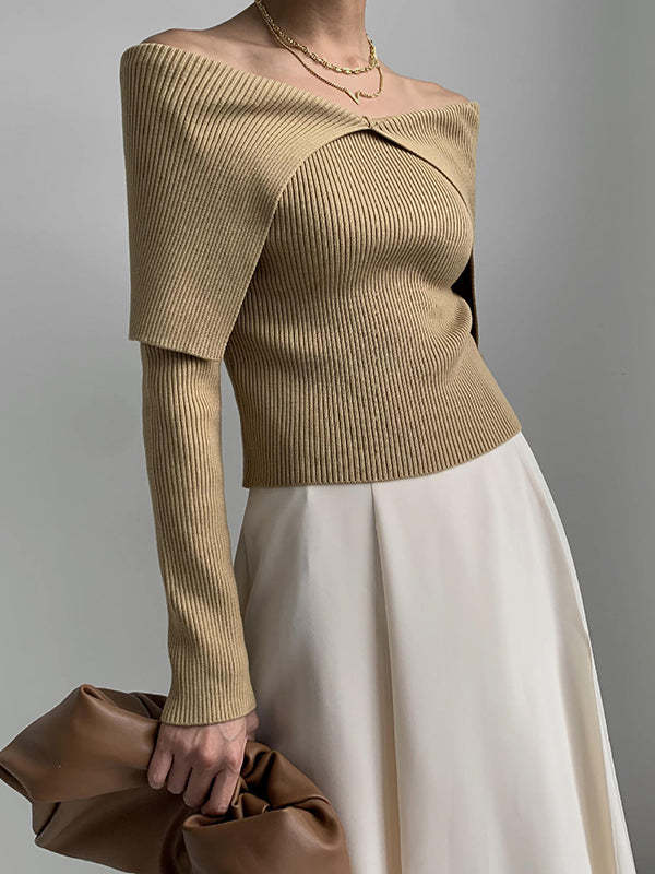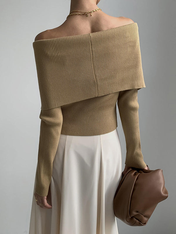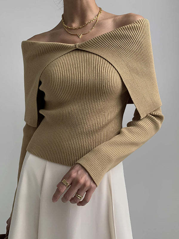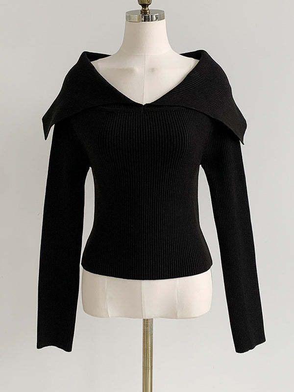 Long Sleeves Skinny Solid Color Lapel Knitted Hats Pullovers Sweater Tops