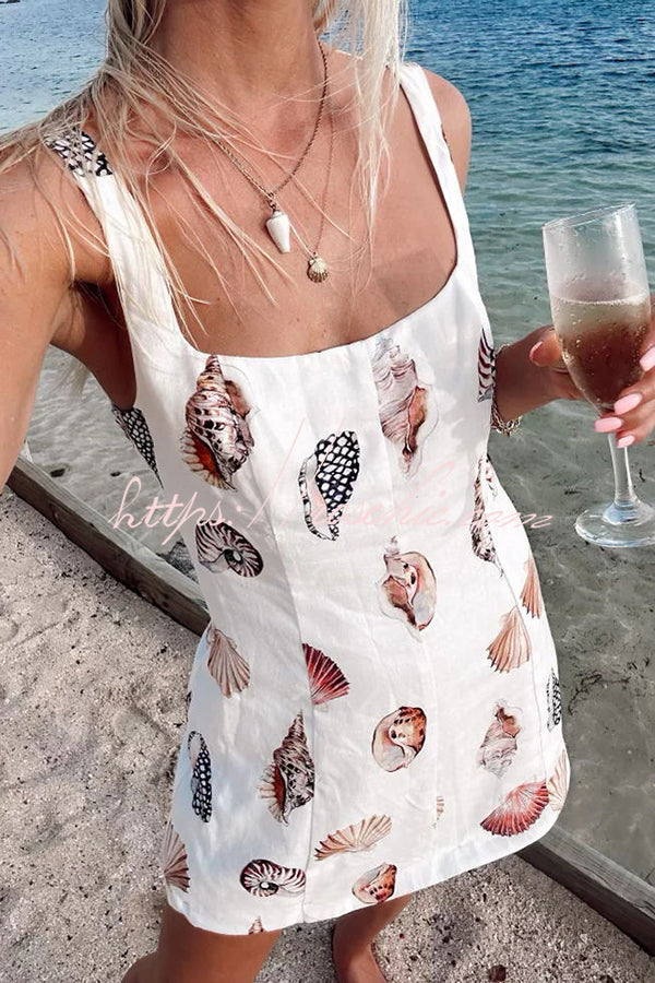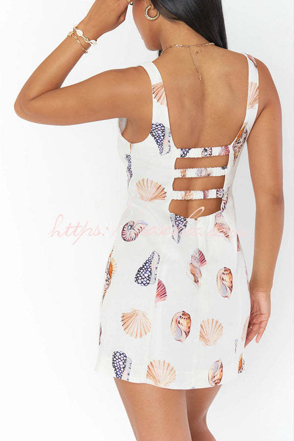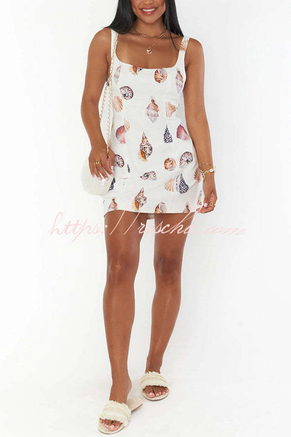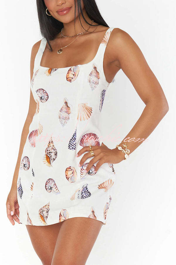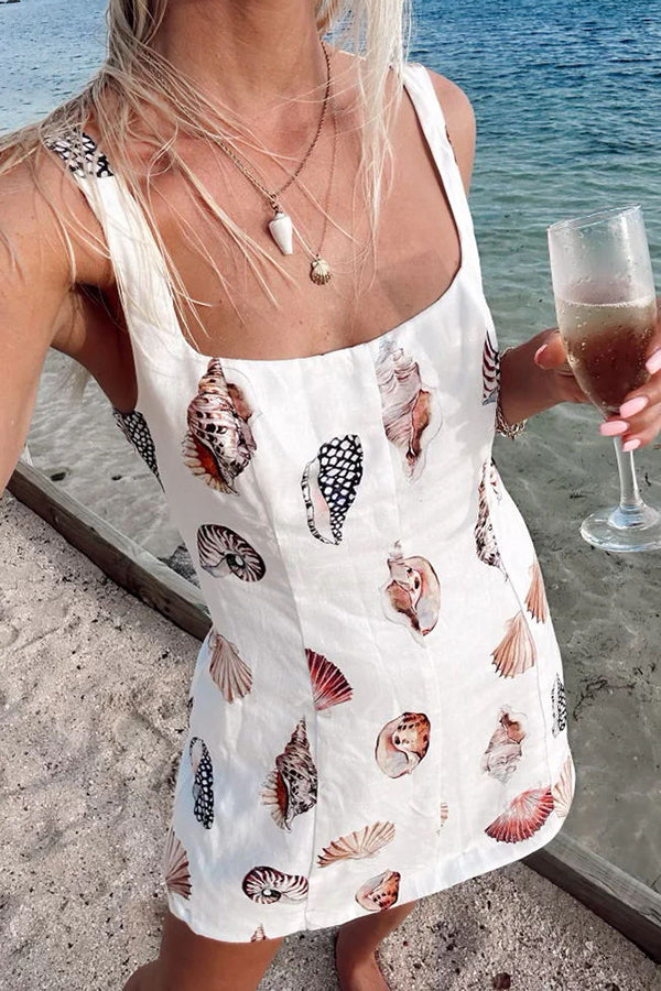 Steph Linen Blend Shells Unique Print Back Elastic Design Mini Dress
