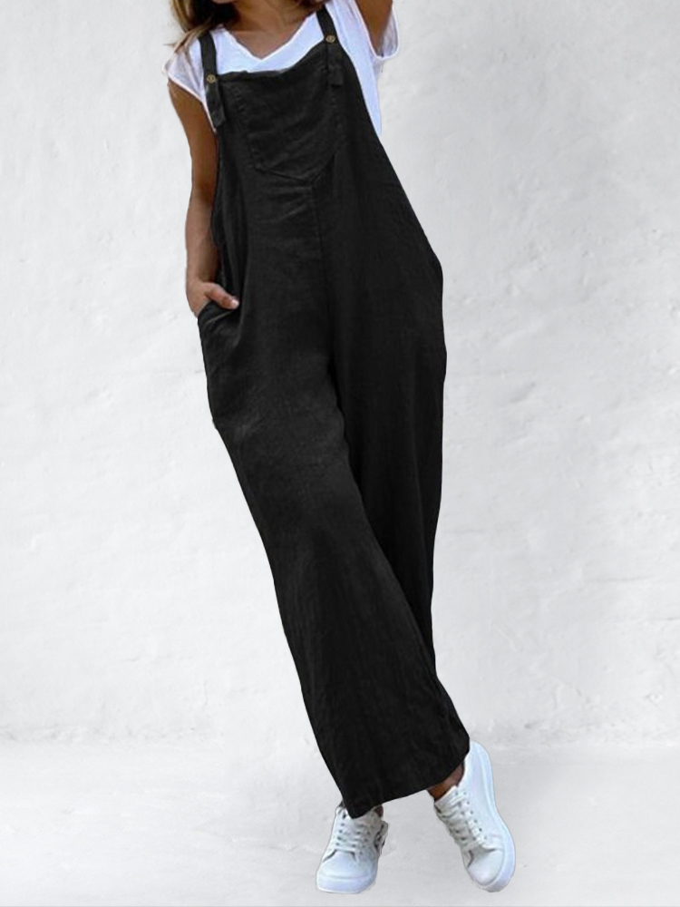 Loose Fit Patch Pocket Linen Cotton Jumpsuit