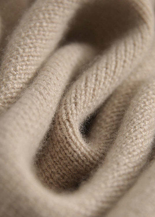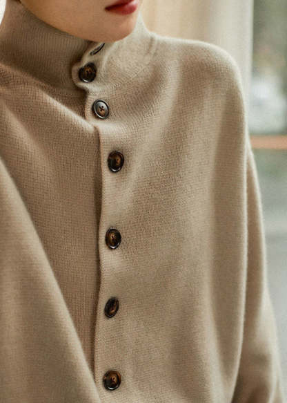 Loose Light Camel Turtleneck Button Thick Knit Sweaters Long Sleeve
