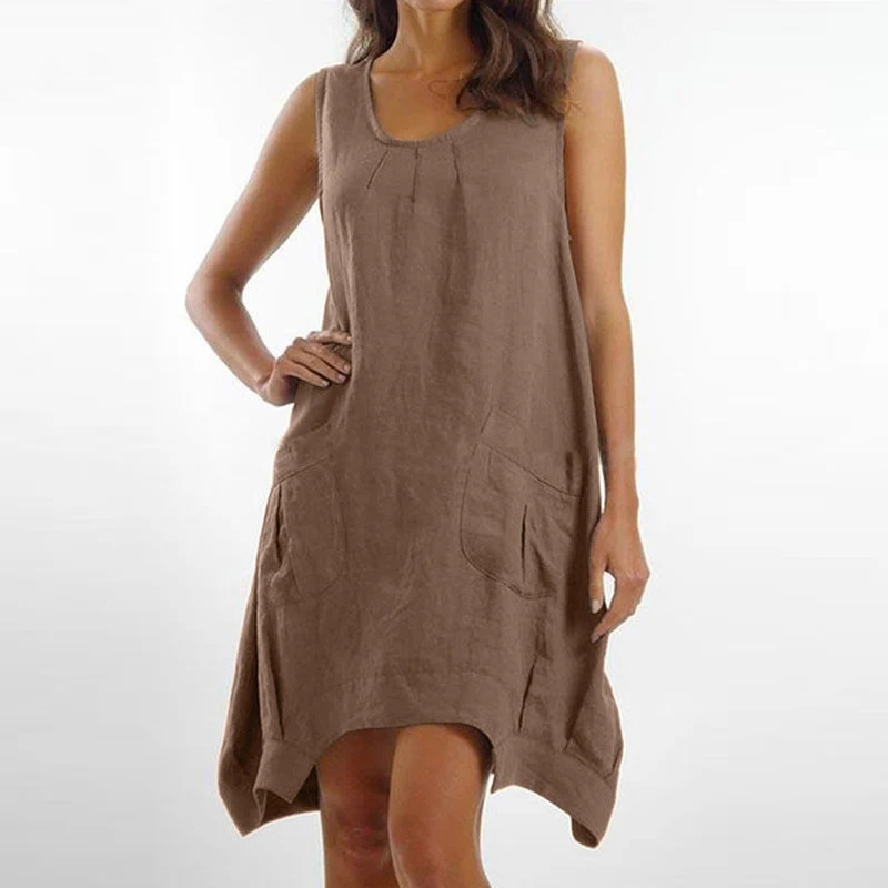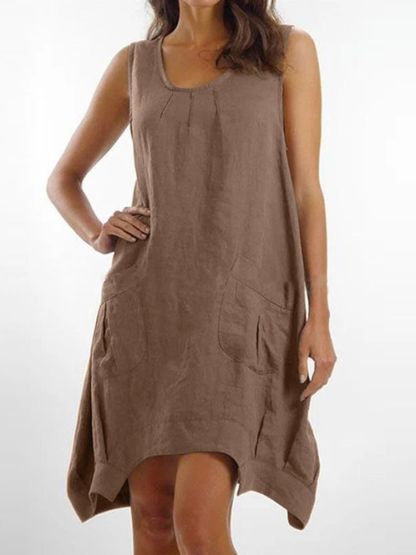 Loose Solid Color Pocket Long Sleeveless Midi Dress