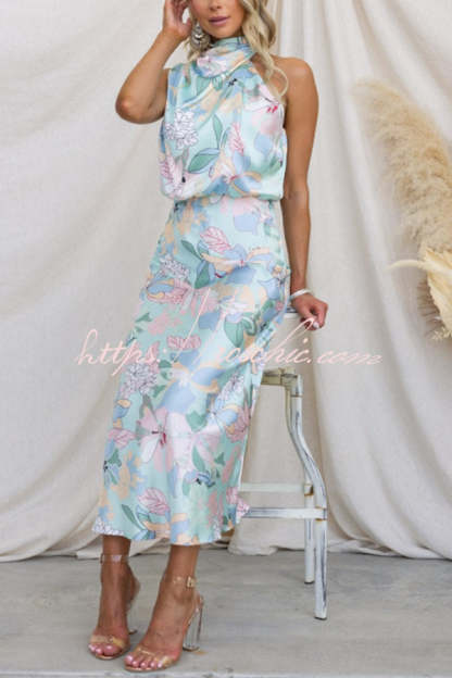 Love In The Garden Floral Halter Neck Elastic Waist Maxi Dress