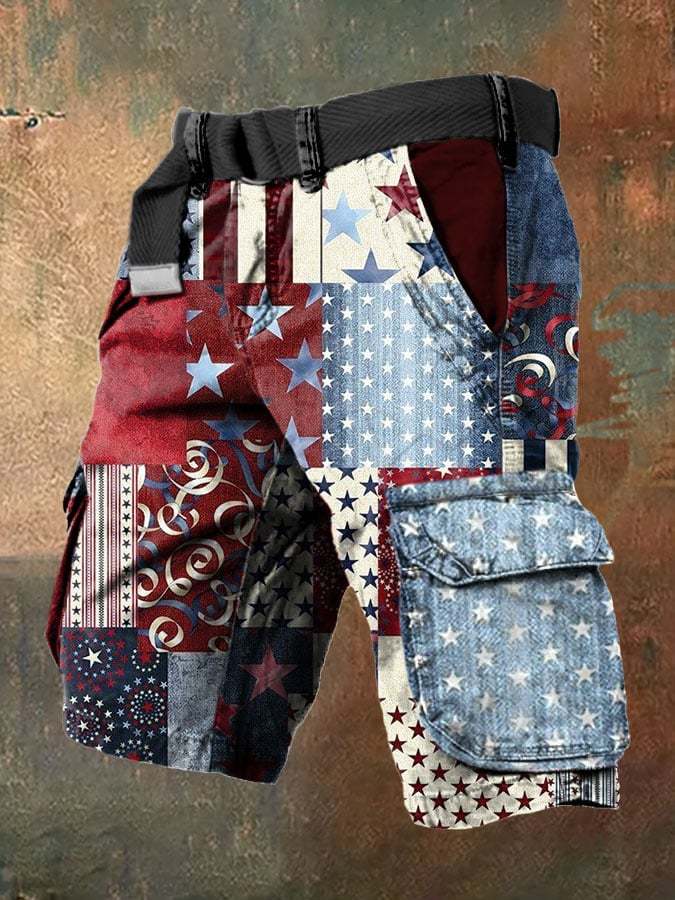 Man's Independence Day Flag Patchwork Print Cargo Shorts