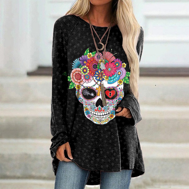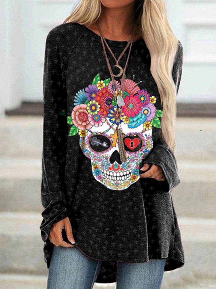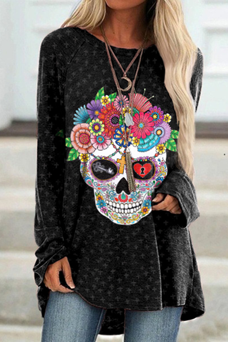 Marigold Skull Print Long Sleeve Tunic