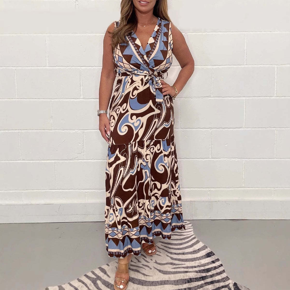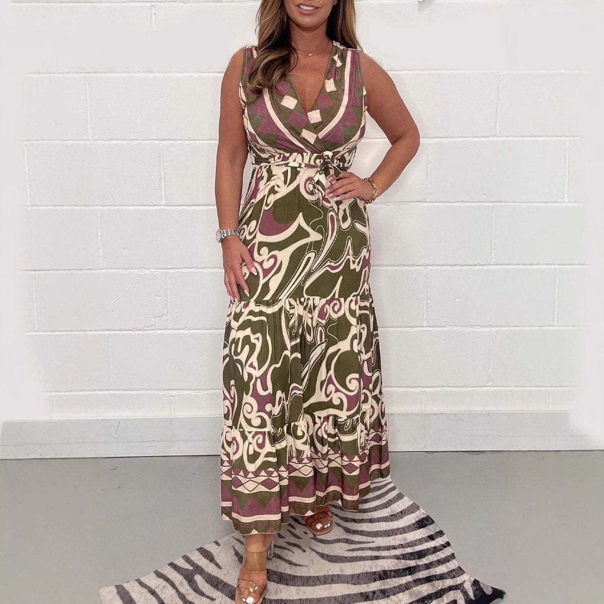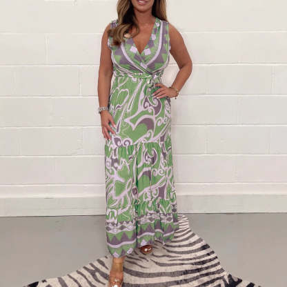 Package Includes:1*V-Neck Printed Maxi Dress with Belt