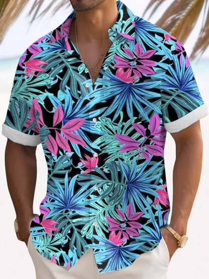 Men's Art Hawaiian Party Short Sleeve Pockets Casual Shirt