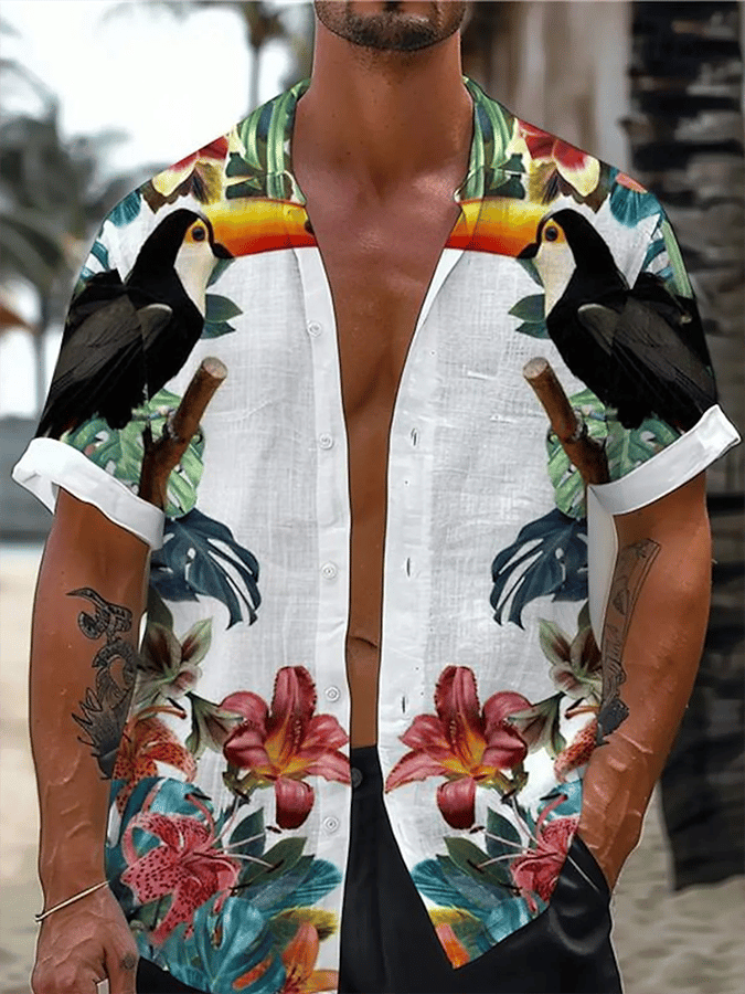 Men's Art Hawaiian Short Sleeve Pockets Shirt