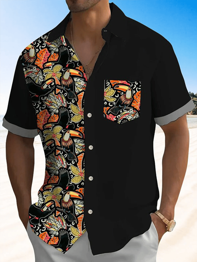 Men's Art Hawaiian Short Sleeve Pockets Shirt
