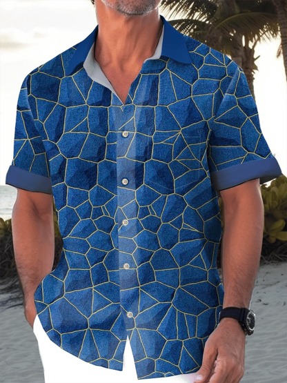 Men's Art Hawaiian Short Sleeve Pockets Shirt