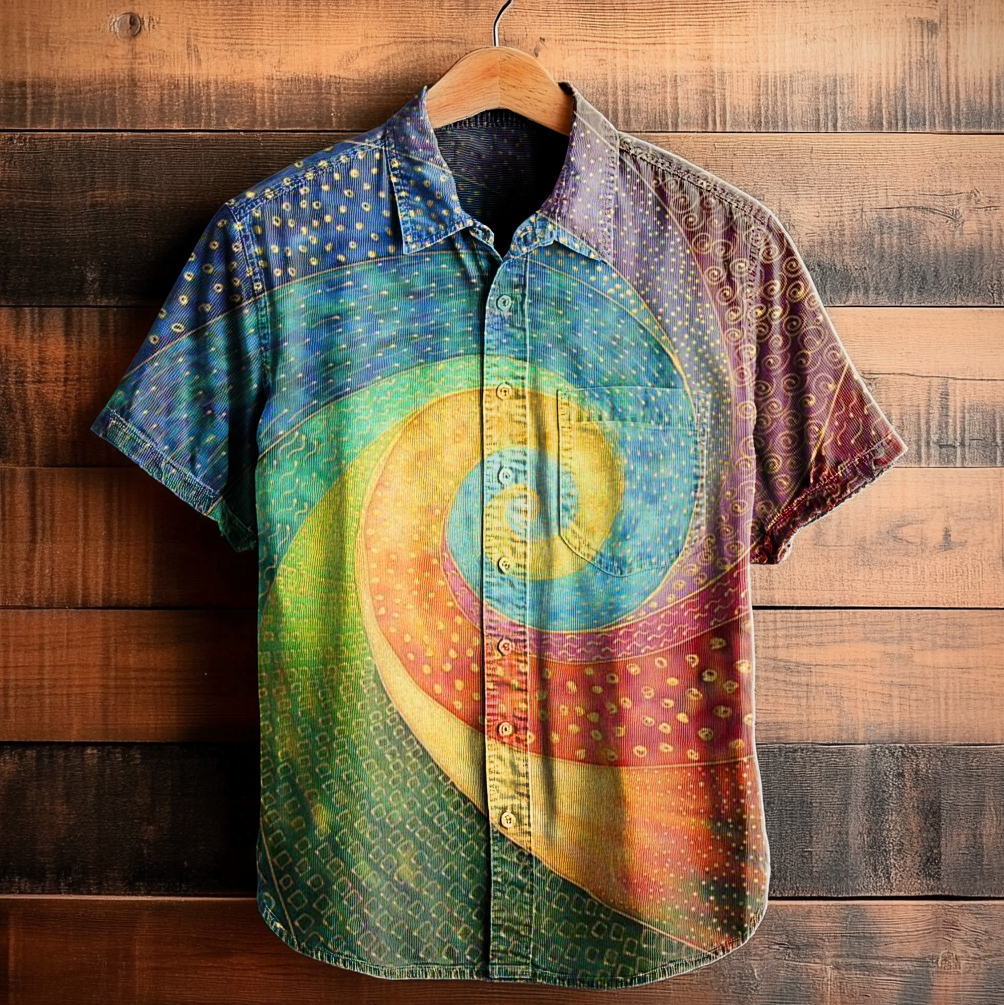 Men's Art Painting Colorful Swirl Fun Print Lapel Shirt