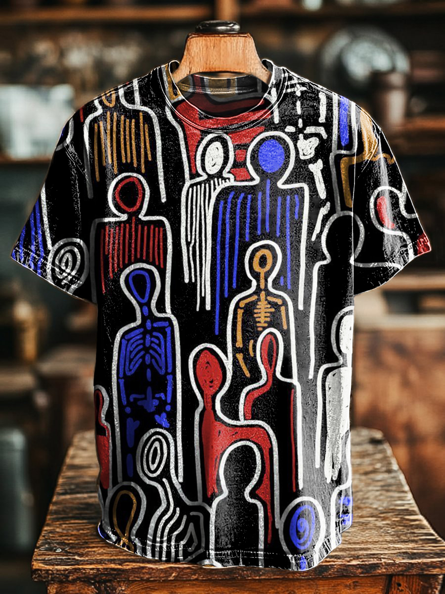 Men's Art Painting Ethnic Retro Print Slim Short Sleeve